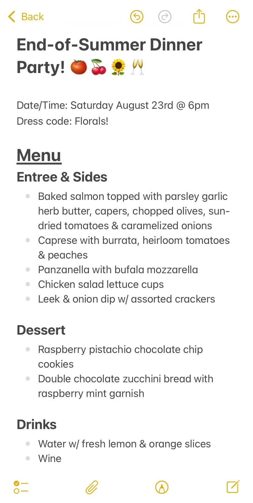 For our End-Of-Summer theme, we decided to highlight vibrant colors (think red, yellow & green) and florals in the food and table decor. Then we curated a Mediterranean-inspired menu with plenty of refreshing and bright flavors to celebrate the time of year that has (in my opinion) the best produce. Below is our Pinterest tablescape inspo and menu.
